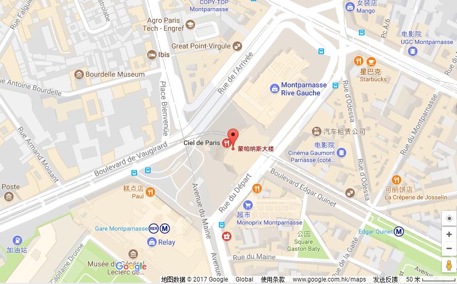 地铁:地铁4、6、12、13号线至Montparnasse-Bienvenüe站