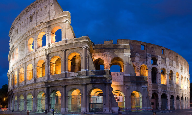 亦译作罗马大角斗场、罗马圆形竞技场、罗马竞技场等,建于公元72-82年间,是古罗马文明的象征。遗址位于意大利首都罗马市中心,威尼斯广场南面,古罗马广场附近,占地面积约2万平方米,长轴长约为188米,短轴长约为156米,圆周长约527米,围墙高约57米,这座庞大的建筑可以容纳近九万人数的观众。竞技场的建筑设计并不落后于现代的美学观点,事实上,大约2000年后的今天,每一个现代化的大型体育场都或多或少的烙上了一些古罗马竞技场的设计风格。事实上古罗马时代的竞技场修建了很多,遍及地中海周边沿岸城市,但是留存下来保存完整的屈指可数。四层竞技场全世界只有一座,就是意大利罗马的这座,它在建筑史上堪称典范的杰作和奇迹。
