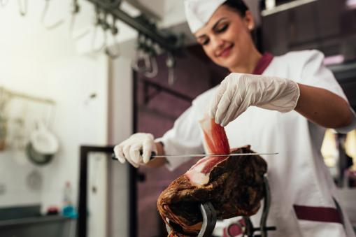 加工后的火腿肉必需经由过程专人的嗅觉测试(拿特制粗刺针cala刺入火腿,经由过程嗅觉断定此火腿能否腌制到位)。