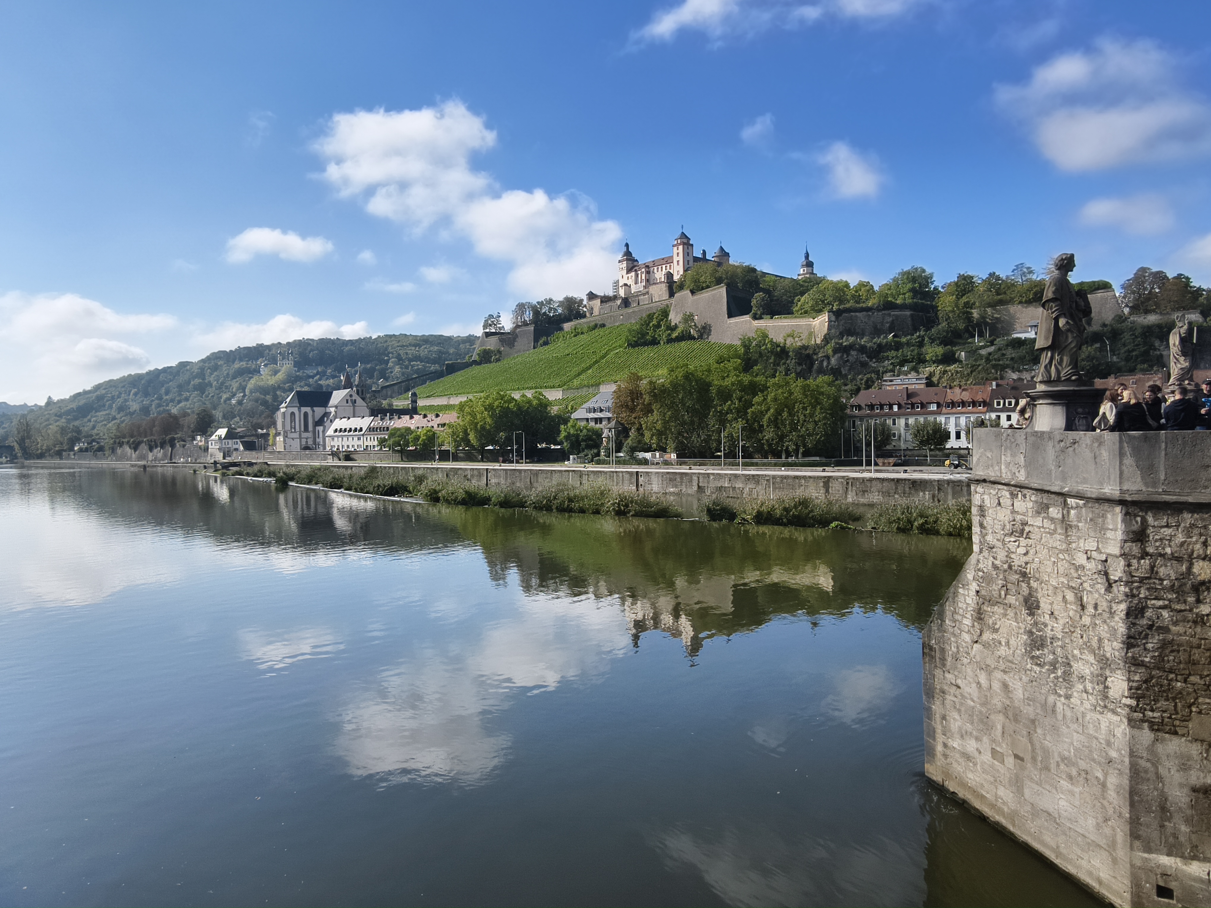 是维尔茨堡城里,美茵河上最美丽的一座桥,它就在玛丽恩山脚下,被玛丽恩城堡俯视着,是从城堡通往老城的必经之路。