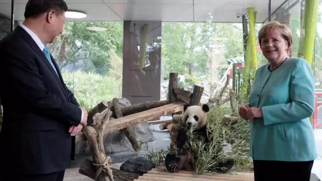 默克尔和习近平主席共同看望了柏林动物园的大熊猫。双方都强调,今年是中德建交45周年,两国在很多领域有着良好的合作——其中也包括熊猫研究领域。